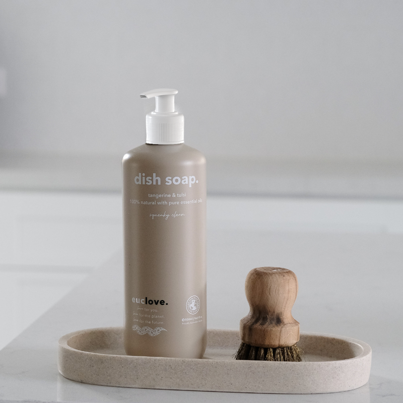Harnessing the natural cleaning power of lemon and eucalyptus essential oils, Euclove Dish Soap effortlessly cuts through stubborn grease and grime for a sparkling clean.