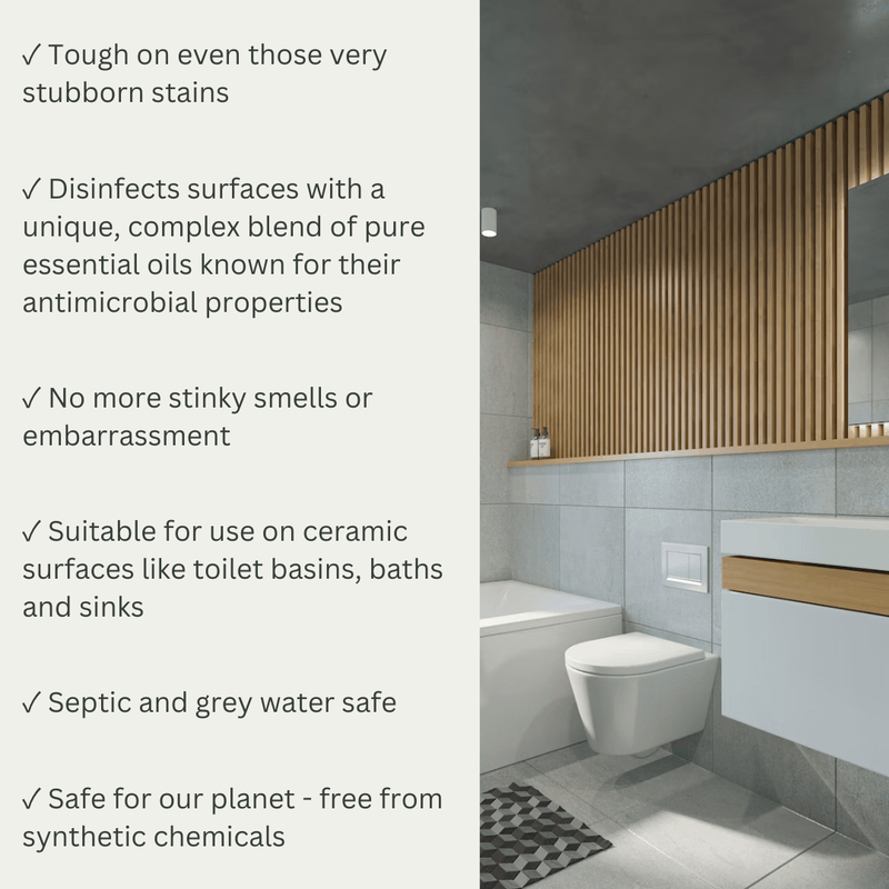 Your loo will be sparkling clean so you can use it in peace! Even gets rid of those stubborn stains naturally with the power of natural ingredients & pure essential oils.